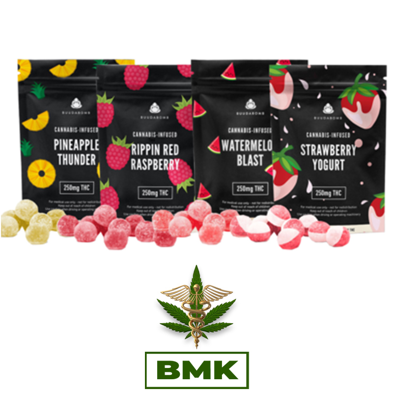 The Buudabomb Blackline takes the great taste of the gummies you love so much and turns the potency up to an 11. With 250mg of THC per resealable bag, these Vegan and Organic gummies are both delicious and potent. Made with a Sativa-Indica blend and Super Pure Distilled THC, the long release formula gives you an enhanced experience.